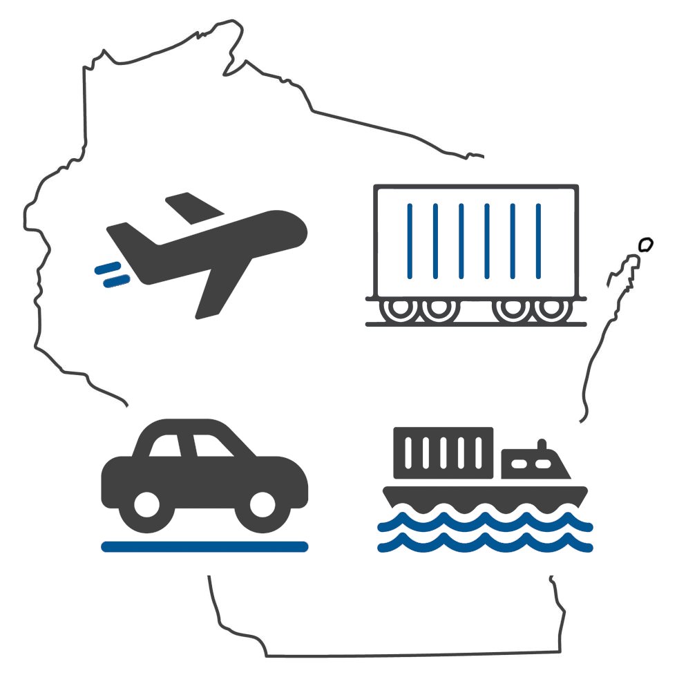 From the buses in Racine to the Port of Green Bay to the rail lines in Superior to the Waukesha County Airport to the roads we use every day, Wisconsin’s transportation network is the key to connecting goods to market and people to jobs.